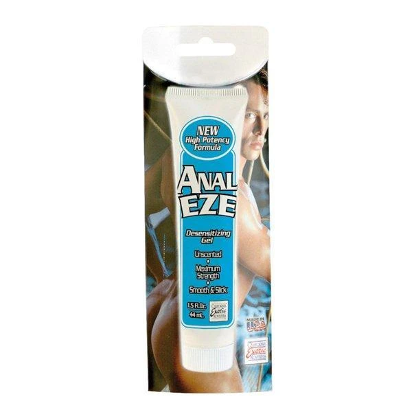 Anal Eze is a desensitizing gel used to enhance the pleasure of anal penetration. New high potency formula. Desensitizing gel works great when performing anal sex. Maximum strength. Smooth and silky. Unscented gel comes in a 1.5 fluid ounces.