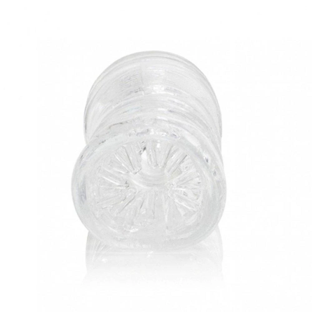 Squeeze the cleverly ribbed outer sleeve to tighten the tunnel around your cock and provide even more massaging action to your member. The clear masturbator lets you watch as your meat grows inside the enticing chamber! Once you’ve cum, simply wash out the inside of the sleeve with warm water and antibacterial soap, or your favorite toy cleaner! You’ll love the intense pleasure this big boy provides!