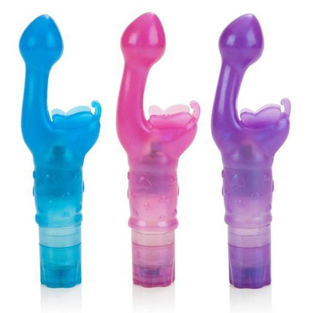 This best beginner G-spot vibrator and clit stimulator is one of the most popular toys on TooTimid.com! The Butterfly Kiss is a vibrator with an insertable length of 3” and bulb diameter of 1”. As a
