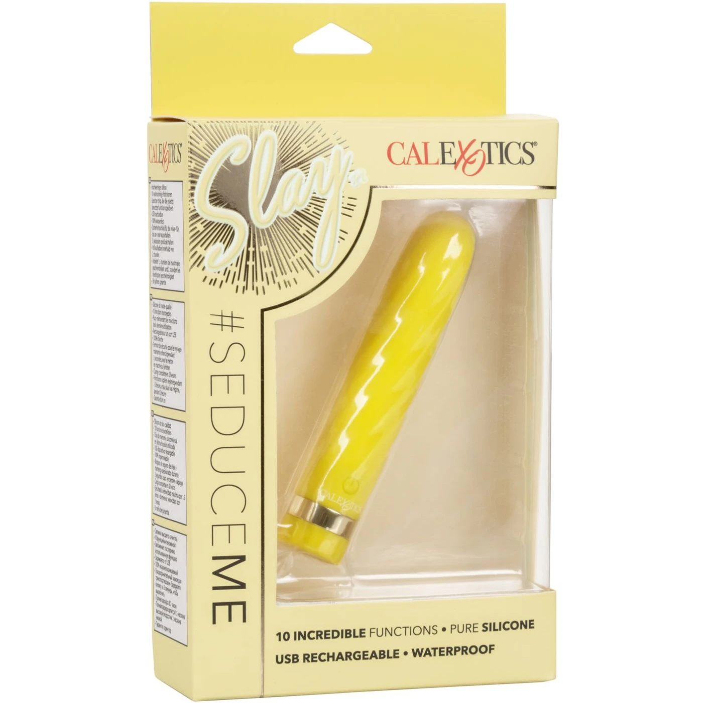 Tease and please your clit for an intense orgasm with the sensual #SeduceMe bullet! This discreet, compact vibrator is easy to hold between your fingers as you massage your clit, nipples, or vaginal walls! The soft swirling waves around the shaft add thrilling sensations as you explore the 10 powerful vibration and pulsation settings! This slim vibrator is perfect for beginner sex toy users or anyone who wants strong targeted clit stimulation to help them reach orgasm faster! This plush silicone bullet vibrator is also completely waterproof, making it easy to clean with soap and warm water! Take it in the tub or shower with you to enjoy some amazing solo pleasure from the quiet, but powerful vibrations!