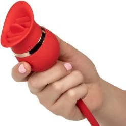 You haven’t been kissed like this! Thesensual French Kiss Casanova is an irresistible flickering tongue & bullet vibrator in one! Allow the flickering tongue to work its magic while you insert the powerful vibrating bullet or hold it against your clit simultaneously for knee-shaking orgasms! It features dual motors so you can independently control the tongue teaser or bullet as you wish! The unique shape of the tongue stimulator surrounds your clitproviding full contact on your most pleasurable spots! The compact size and travel lock feature make this vibrator the perfect travel companion so you can enjoy breathtaking stimulation wherever you please! It also features a state-of-the-art memory chip so you can resume your last favorite setting used during your next masturbation session!