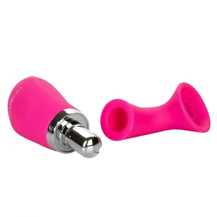 that glides silkily along your skin! The pliable cup-shaped area forms a comfortable seal around your clit while providing you with incredible sensations that mimic the feel of oral sex! The curved neck of this clit sucker is movable so you can easily position it on your clit or nipples, and it’s removable so you can clean it easily!