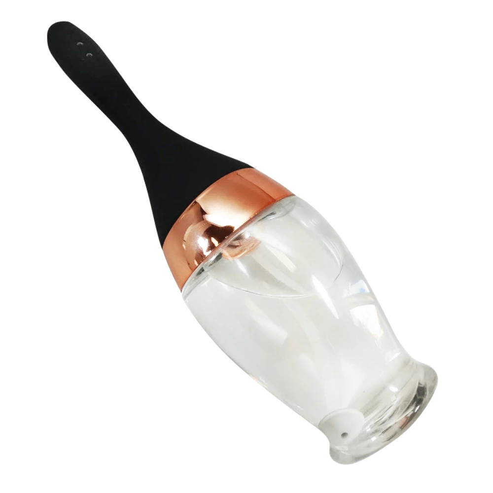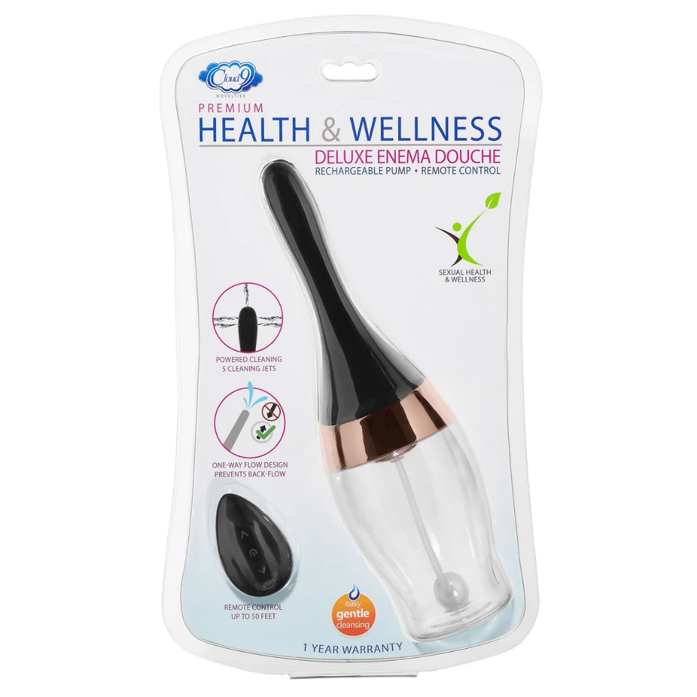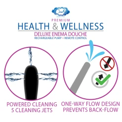 This unique anal enema douche cleanses you or your partner before and after anal play, but with a twist. The nozzle includes 5 spraying ports for a 360-degree cleaning. It also includes 3 pump speeds and vibrates for added pleasure. Use with or without the remote with a partner to spice things up. This device features a non-backflow valve to prevent contamination.