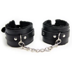 Slap on the cuffs and introduce BDSM & roleplay into the bedroom with these sexy faux fur lined leather wrist cuffs! Sexy and stylish, these bondage cuffs are fully adjustable for comfort and fit most wrist sizes. Great for bondage play novices and perfect for BDSM enthusiasts, these cuffs feature durable quick-release metal clips that are attached to a chain so you can fasten them to the bedpost, chair, or wherever your desires take you! Your subject won’t be able to escape anytime soon. Cuffs fit wrists 5″ – 11″ around.