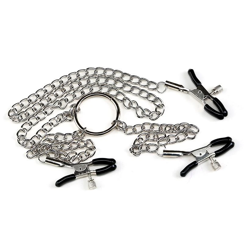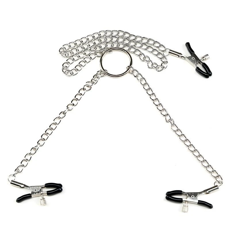 Explore nipple and clit clamping pleasure with this set! The weighted chain gives an arousing sensation that will create a hot and steamy experience! The strong chain links two fully adjustable crocodile clamps to an O-ring in the middle that connects to a clit clamp. Advance nipple and clit play by attaching additional weight and restraint accessories to the central O-ring! The metal screws on the clamps offer easy and quick tension adjustment allowing the perfect fit for any BDSM enthusiasts. This nipple and clit clamp set is perfect for those with any experience level and allows you to take your sensory play to a new level!
