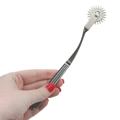 Roll the spiked wheel lightly over your partner’s skin during foreplay or while they are restrained or blindfolded. This metal pinwheel tool will build your lover’s sense of anticipation as they await your touch and make their skin incredibly sensitive to every lick, kiss, and caress! You will have complete control over the amount of pressure with the ergonomic handle design of this light, but a durable toy that is perfect for enhancing your foreplay or bondage play.