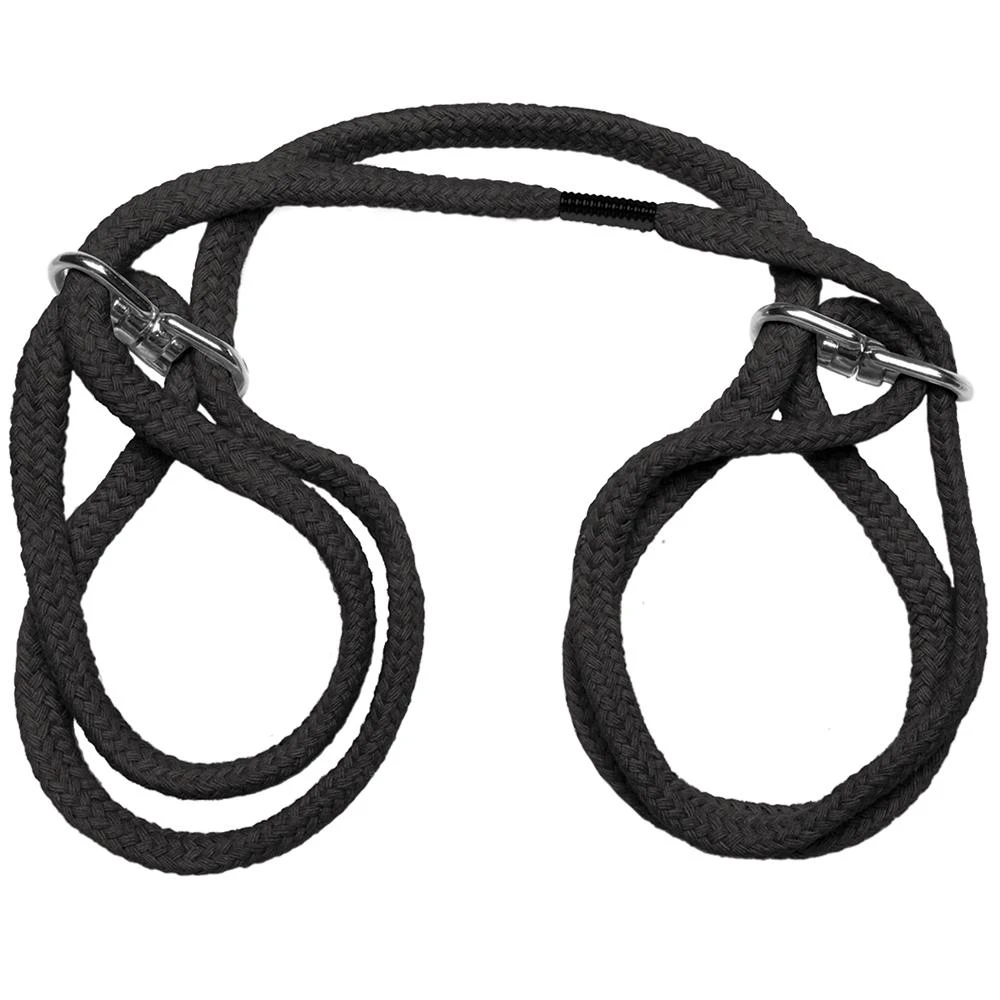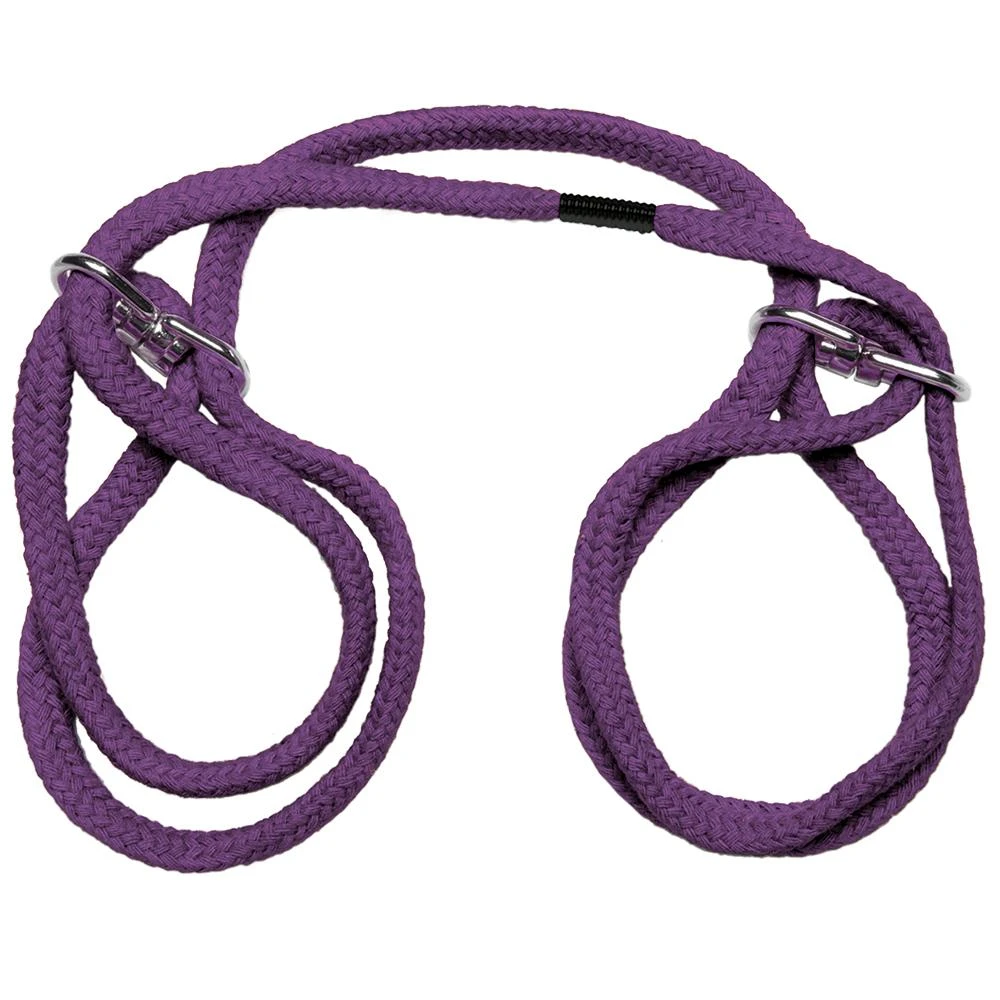 Try your hand at bondage with these easy to use Japanese style wrist or ankle cuffs! Great for beginners with its simple slip-ring design, requiring no elaborate rigging or knotting experience! Experienced bondage players will love the fast restraint as well as the variety of uses and customizations that the long loop allows! The rope is made from 100% cotton fibers that stretch and bend with the body and the metal hardware swivels for safe and comfortable wear! Easily delve into your fantasy and enjoy the many ways you can wear these cuffs!