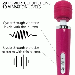 - “But what do I do with it?!” To use, plug the cord into a wall outlet and press the power button to turn on/off. Press the function button to cycle through the electric massage wand’s 20 earth-shattering vibration functions! Massage your clit for explosive orgasms during masturbation or sex, or use this personal massager on your lover to give them a sexy rub down to set the mood.