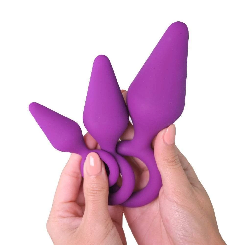This set of flexible anal plugs is the perfect choice for any experience level! The tapered shape provides erotic anal stimulation and gives you a “full” feeling, so you can experience more powerful orgasms during masturbation or sex! With gently pointed tips and easy to pull looped bases, these high-quality butt plugs are great for beginners. Find the perfect size for your pleasure, or use for anal training and slowly work your way up to the larger sizes to prepare for anal sex with your partner!