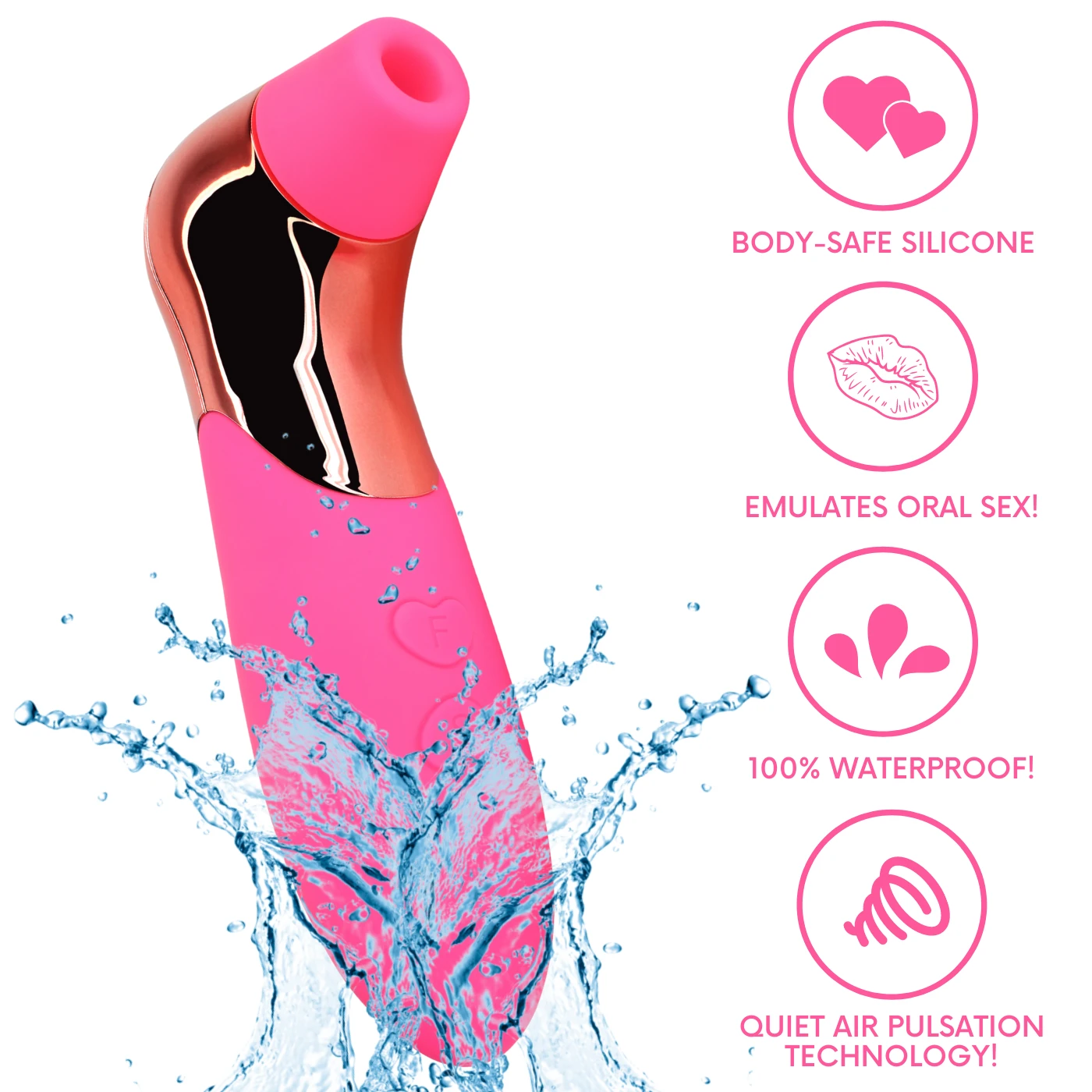 uses gentle pressure waves that surround your clit and mimic a sucking sensation! The pulsating vibrator functions help heighten the sensitivity of your clitoris while sucking and vibrating simultaneously without overstimulating, making it incredibly easy to orgasm again and again! Slowly build up to an exceptional orgasm, or amp up the sensations by adding the pulsating and escalating vibrations! With 12 modes of sucking and 12 vibrational functions, there are endless combinations that can be used together or alone!
