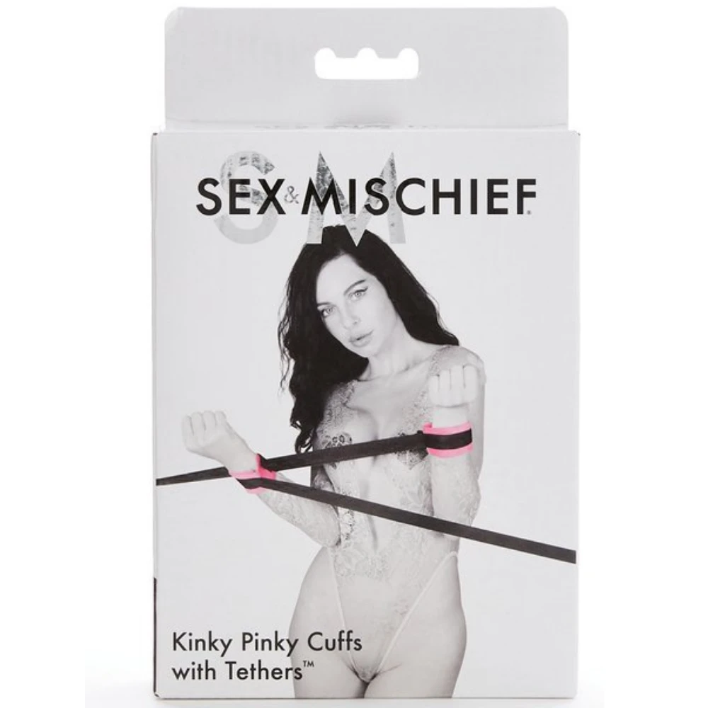 Enjoy naughty restraint play and fulfill kinky fantasies with this set of plush bondage cuffs and tethers!