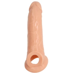Warning: Improper placement of penis extension sleeves can restrict the penis, leading to pain and soreness. Please always be sure to use the proper placement of this toy. In case of pain and soreness, stop use and consult a doctor.