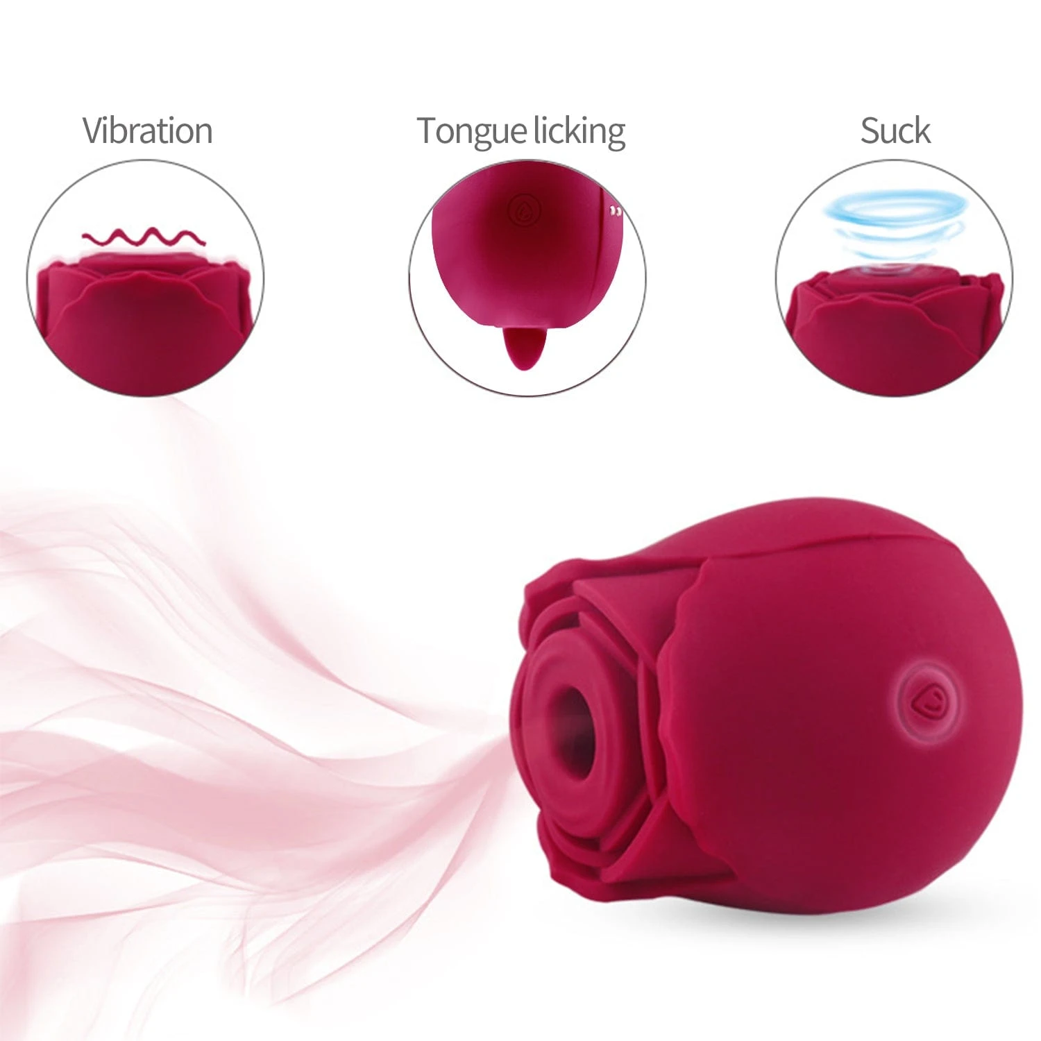 This rose bud vibrating massager allows all genders and sexual orientations to explore self-love through clit stimulation and RJ sensations! Dual-ended so you can pick your pleasure, this toy features a self-motion flickering tongue vibrator and air pulsation clitoral stimulator that provides clit sucking and oral sex sensations! To use this vibrator, gently spread the labia and place the air suction end on your clitoris. Move the rose bud in circles, back and forth, & up and down to experience the intense air stimulation sensations. To switch up the sensations, place the tongue stimulator on your clit and allow the self-motion flickering tongue to work its magic! You can also use the tongue anally for rimming sensations!